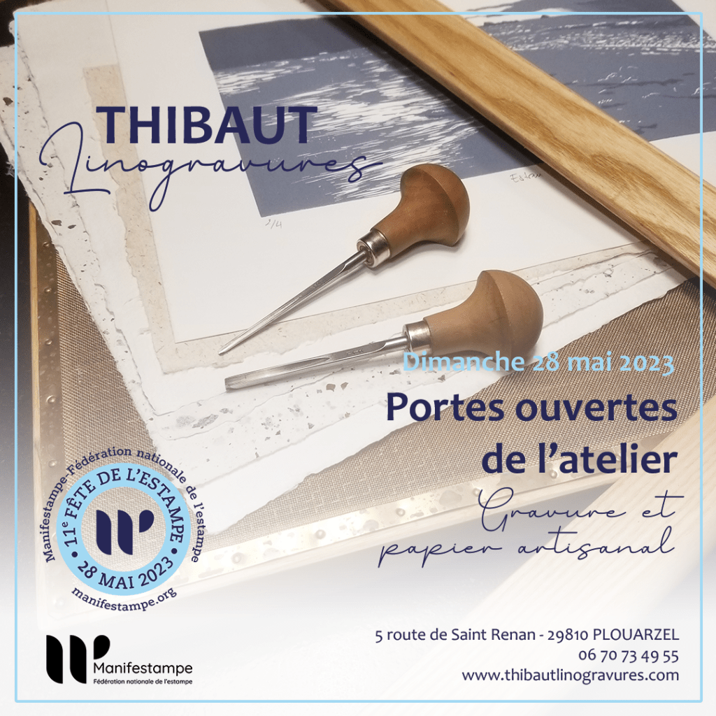 A l’occasion de la 11e fête de l’estampe, l’atelier Thibaut Linogravures ouvre ses portes le dimanche 28 mai. Une nouveauté cette année, démonstration de fabrication de papier artisanal….